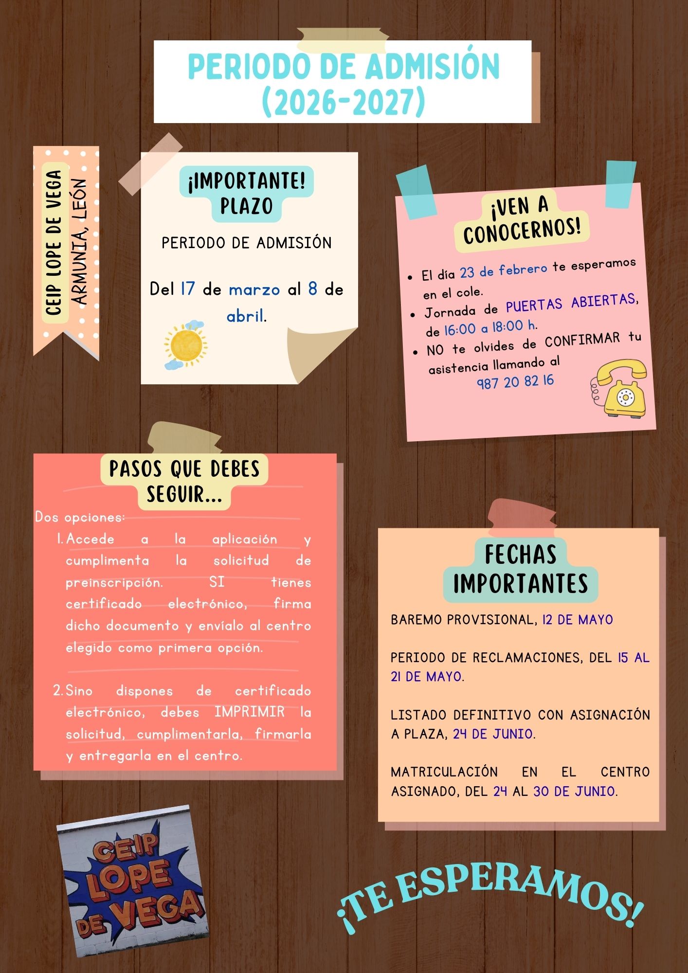 PERIODO DE ADMISIÓN (CURSO 2026-2027)